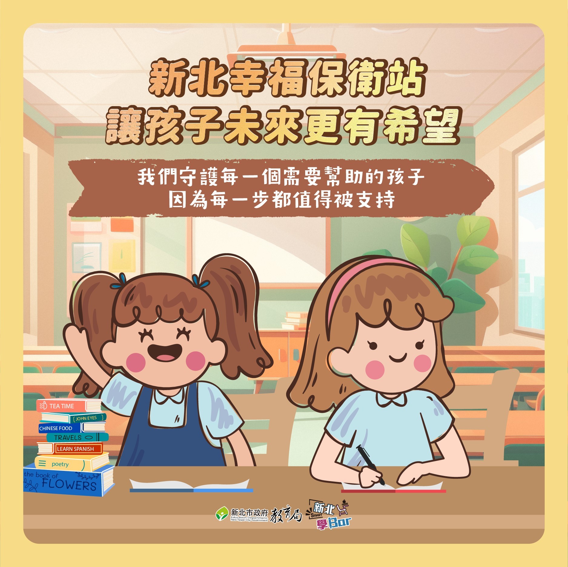 - 為守護18歲以下家遇急難學童,本府結合統一、全家、萊爾富及OK超商成立「幸福保衛站」,並與八方雲集、梁社漢排骨、鬍鬚張、石門集馨村便當及十八王公劉家肉粽合作「好日子愛心大平台供餐計畫」,就讀本市學校或設籍本市學童遭逢變故,饑餓時可至合作商家領取主食計100元餐點,學生僅需填寫個人基本資料即可取餐,後續由門店通報本府視個案情形提供關懷與協助。