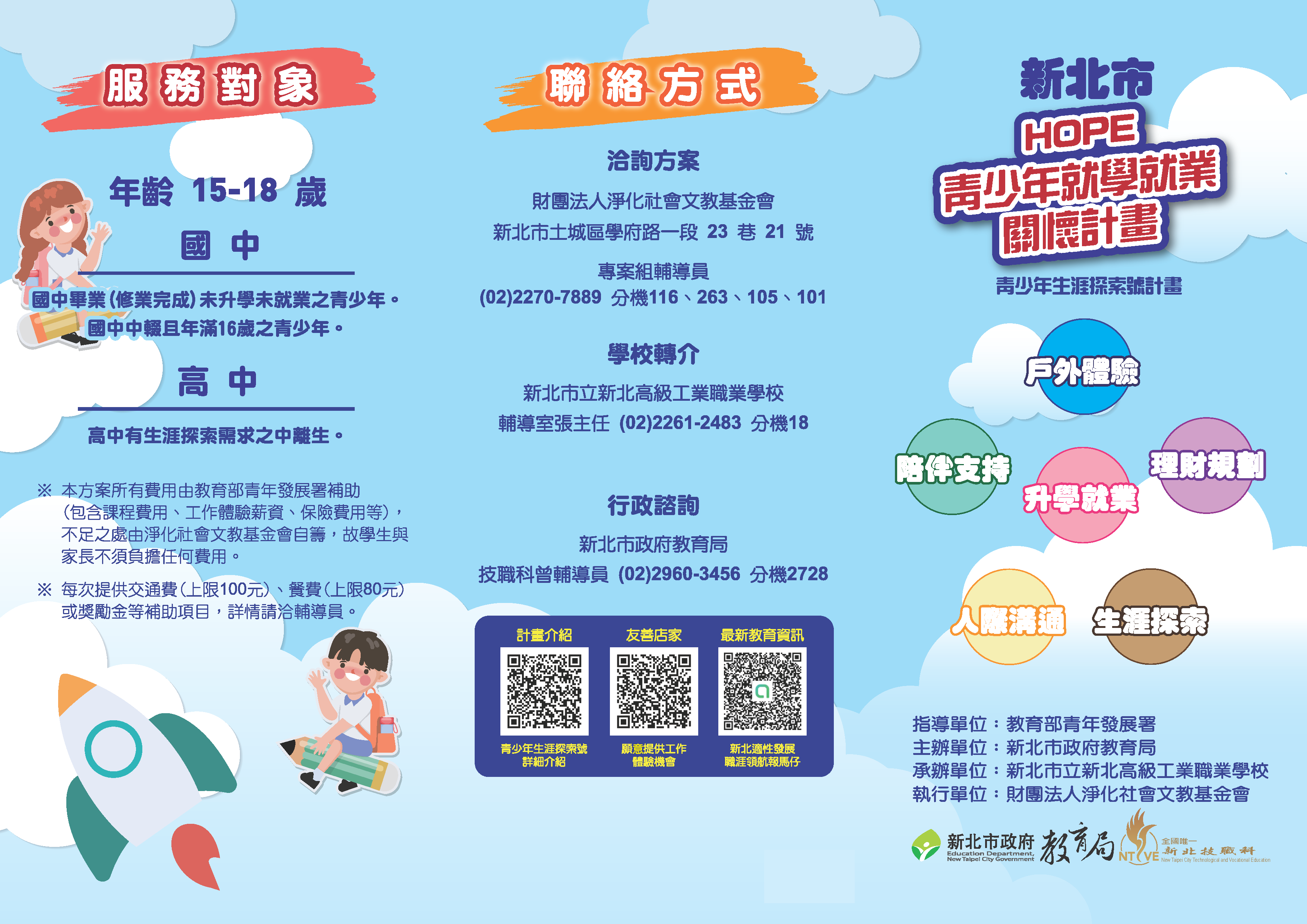 - 依據「新北市HOPE青少年就學就業關懷計畫」暨「113年青少年生涯探索號計畫」辦理。