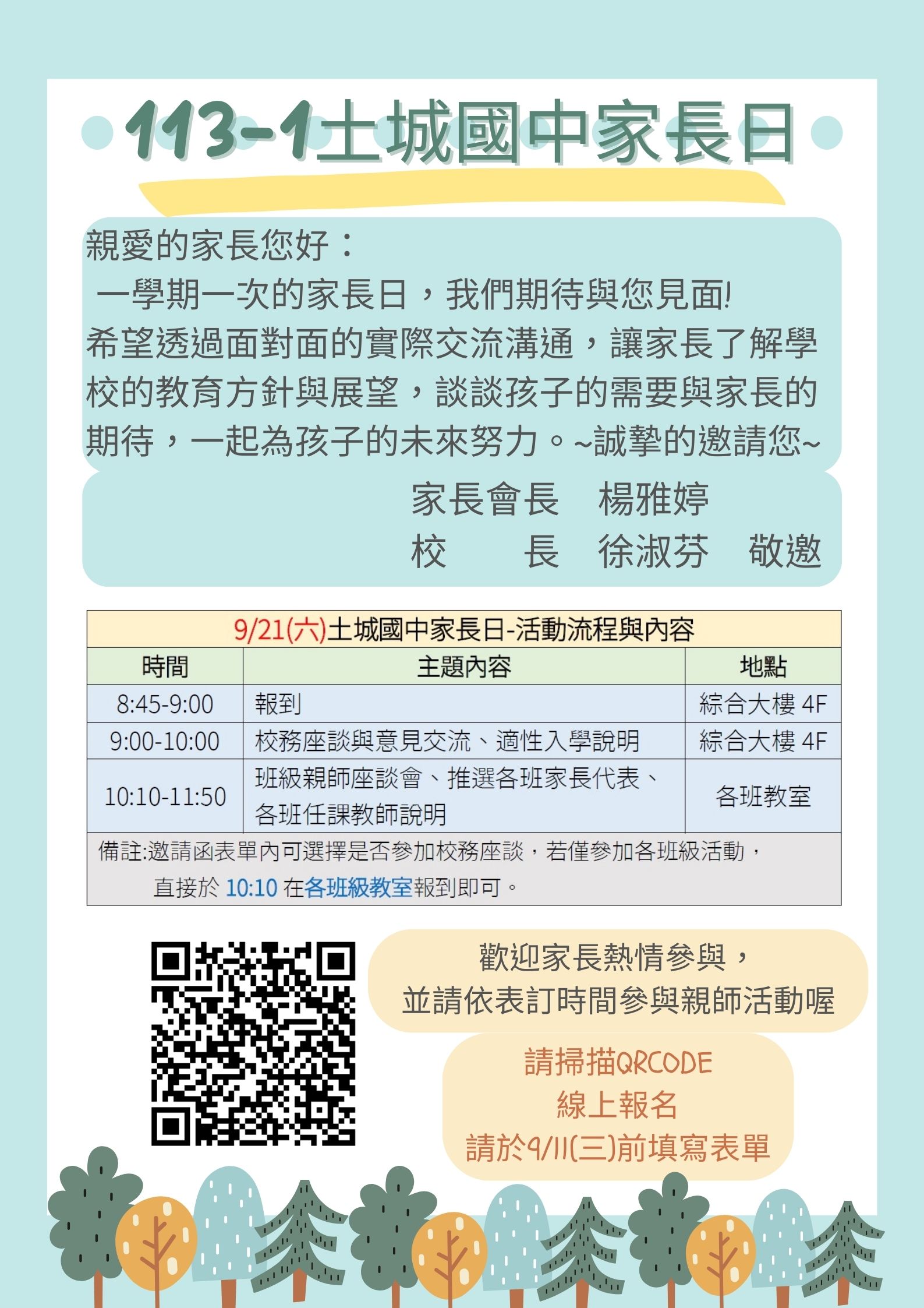 附檔為家長日邀請函,請家長參閱,並掃描Qrcode線上報名唷!