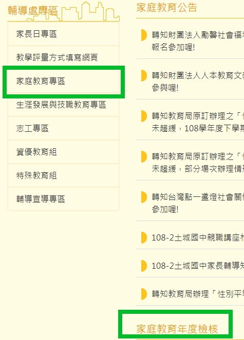 首頁-家庭教育專區及年度檢核專區連結