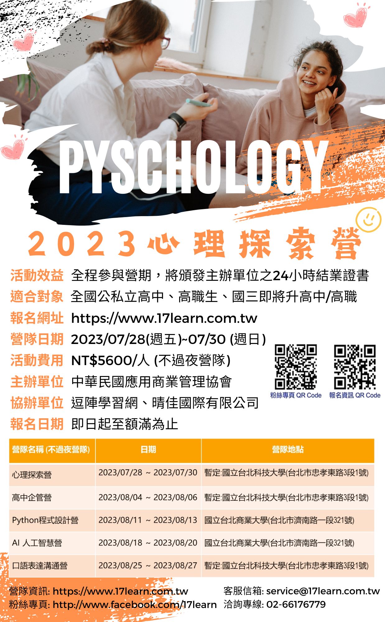 轉知應用商業管理協會辦理「2023年夏令營-心理探索營」活動說明與簡章壹份,歡迎對此主題有興趣ˋ屆畢業生參與。的應屆畢業生報名。