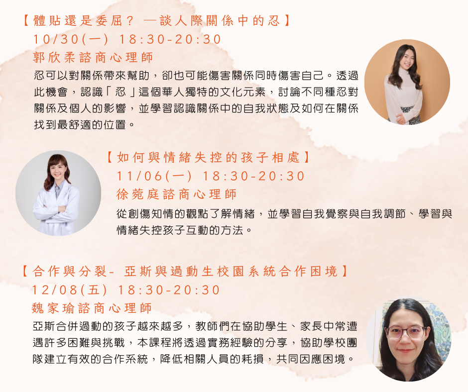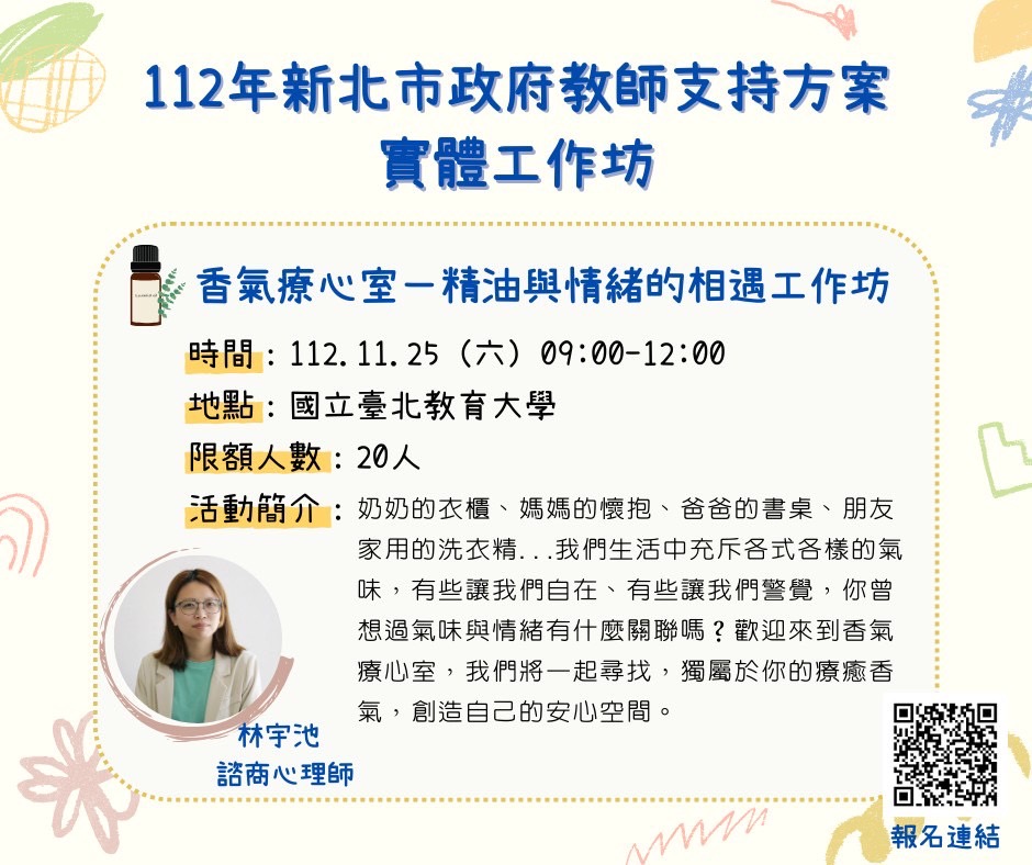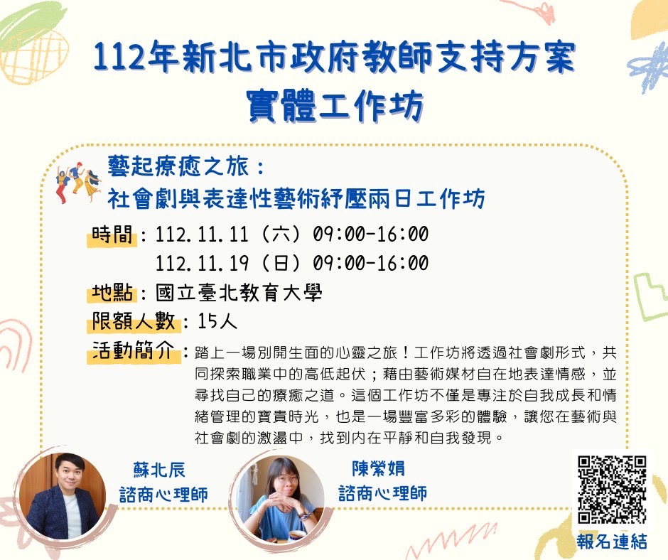 轉知新北市推動教師諮商輔導支持系統服務-112年10月至12月實體與線上研習活動,歡迎有興趣的教師同仁參閱。